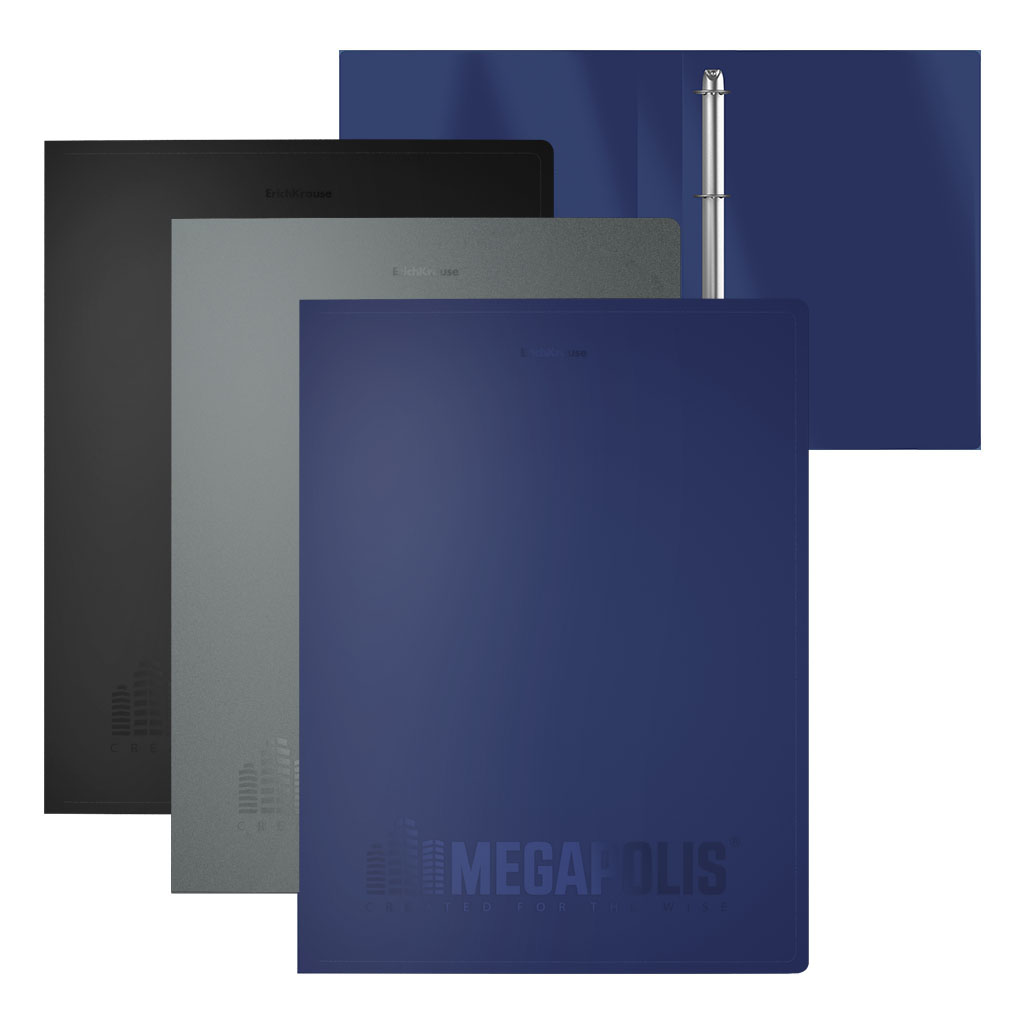 Папка на 4 кольцах пластиковая ErichKrause MEGAPOLIS®, 24 мм, A4, черный (в пакете по 4 шт.)