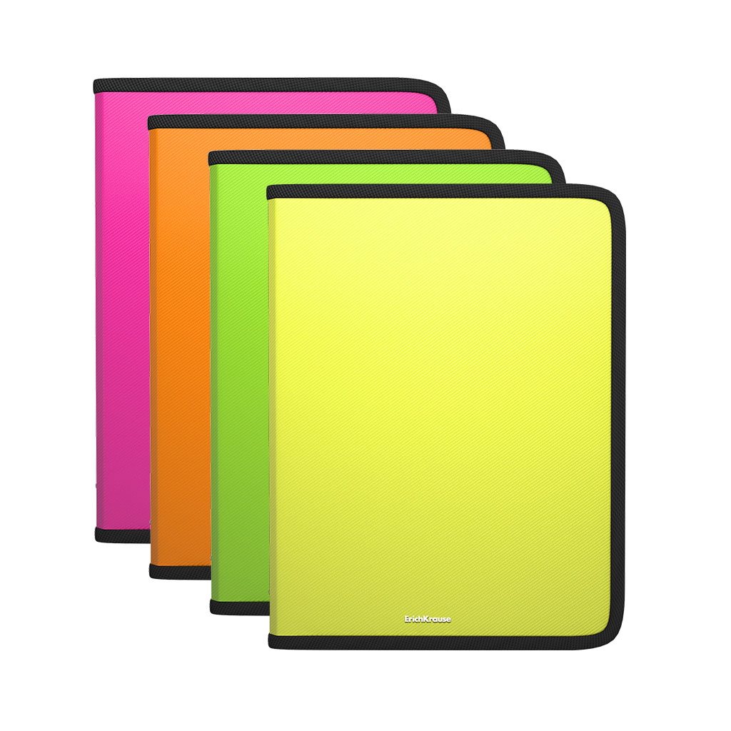 Папка на молнии пластиковая ErichKrause® Glance Neon, A4, ассорти (в коробке-дисплее по 12 шт.)