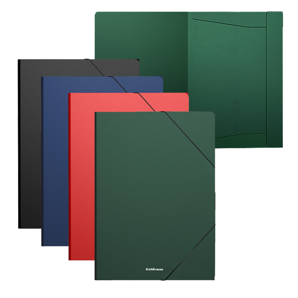 Папка на резинках пластиковая ErichKrause Matt Classic, A4, зеленый (в пакете по 4 шт.)