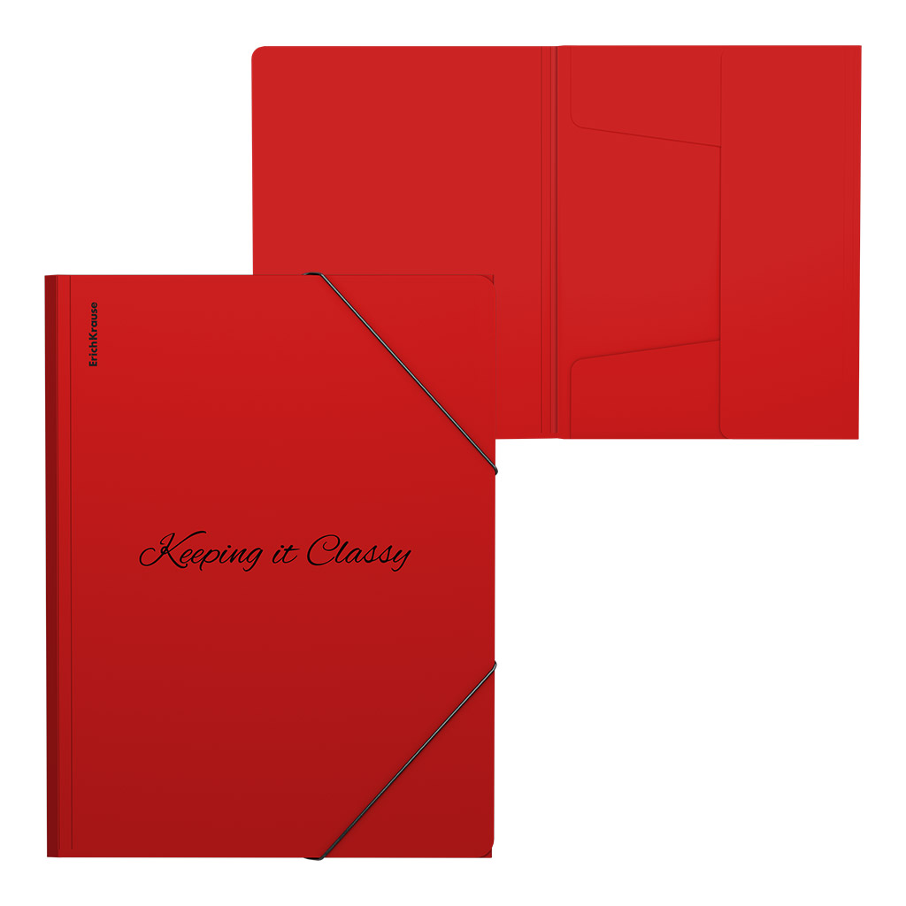 Папка на резинках пластиковая ErichKrause Classic Phrases, A4, красный (в пакете по 4 шт.)