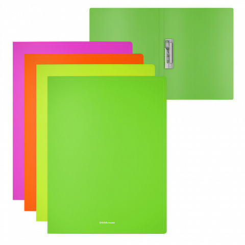 Папка с боковым зажимом пластиковая ErichKrause Matt Neon, A4, ассорти (в пакете по 4 шт.)