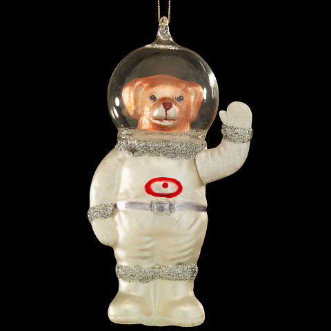 Праздничную елку могут украшать не только шары и сосульки, но и веселые персонажи. Собака в скафандре - очень необычная елочная игрушка. Фрагментарно изделие декорировано блестками. Упаковка - слой плотной бумаги; предназначена только для безопасной транспортировки и хранения. |