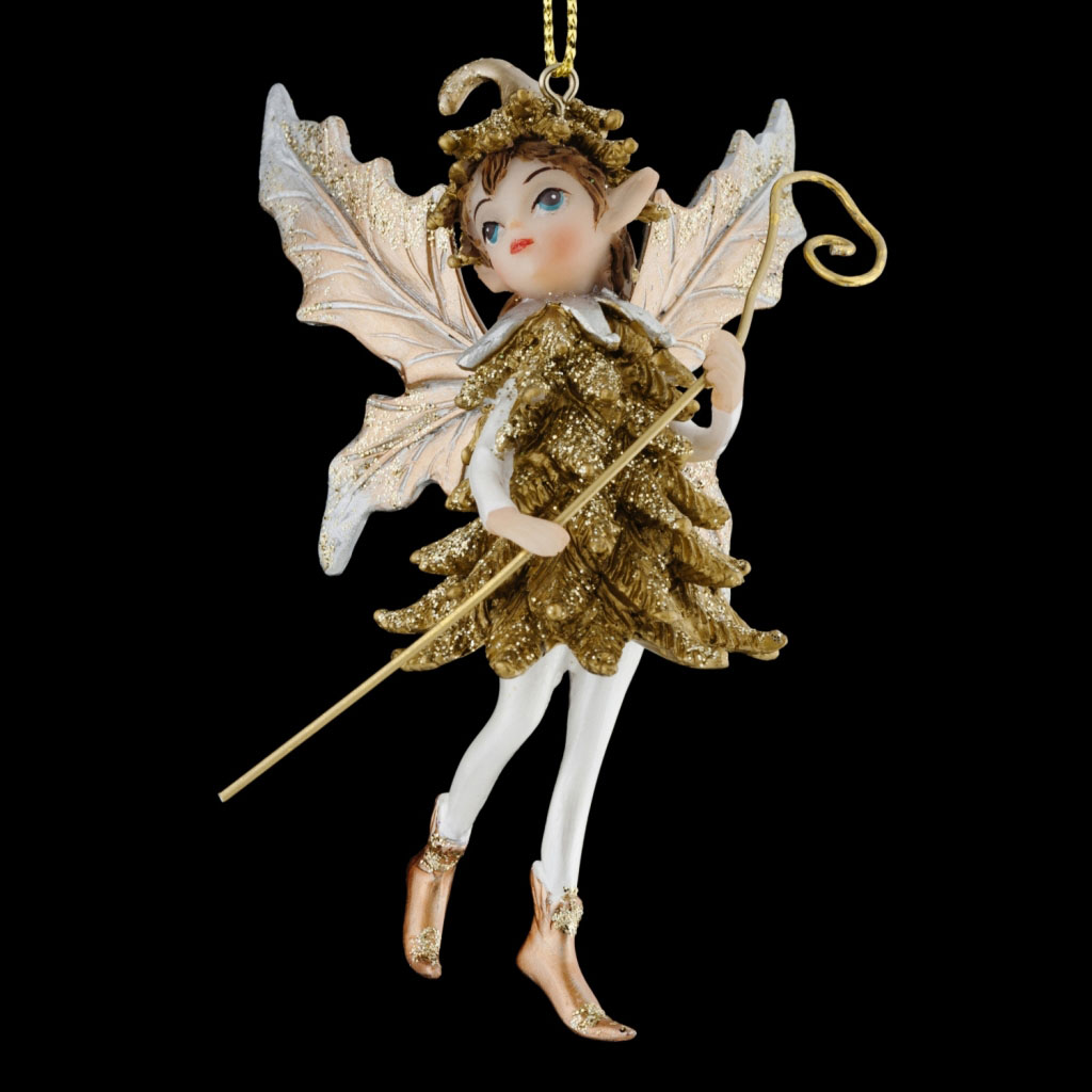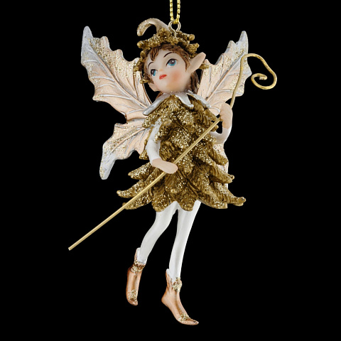Маленький эльф, выполненный из полирезины, отличается изящными, тонко прорисованными деталями. Костюм выполнен в ярком золотом цвете, а бронзовые крылья подчеркивают серебристые узоры. Украшение легкое, подходит для натуральных и искусственных елок. Групповая упаковка… |
