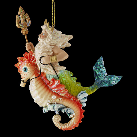 Сказочные персонажи красиво смотрятся на елке, создавая уютную атмосферу дома. Посейдон на морском коньке отличается тонко прорисованными деталями. Украшение достаточно тяжелое и больше подходит для искусственных елок. Групповая упаковка предназначена только для безопасной транспортировки и хранения. |