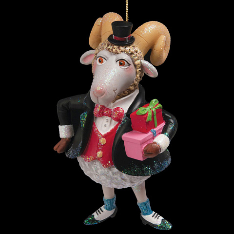 Дизайнерский барашек во фраке и миниатюрном цилиндре порадует любителей оригинальных елочных украшений. Изделие отличается яркими цветами и оригинальными деталями. Групповая упаковка предназначена только для безопасной транспортировки и хранения. |