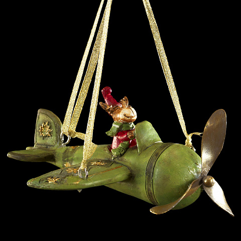 Необычное украшение в виде лося, сидящего за штурвалом самолета, выполнено из полирезины. Крылья самолета украшают золотые звезды. Украшение можно разместить как на елке, так и в любом подходящем месте интерьера.Каждое изделие упаковано в полибэг и ложе из… |