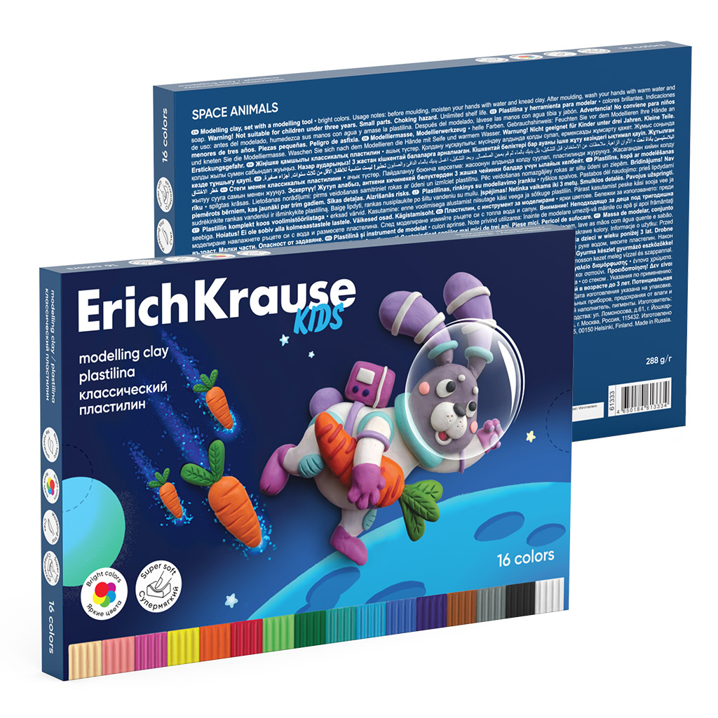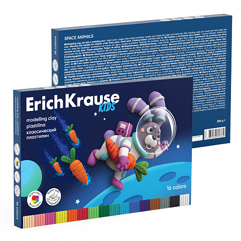 Пластилин классический ErichKrause Kids Space Animals 16 цветов со стеком, 288 г (в коробке 16 шт)