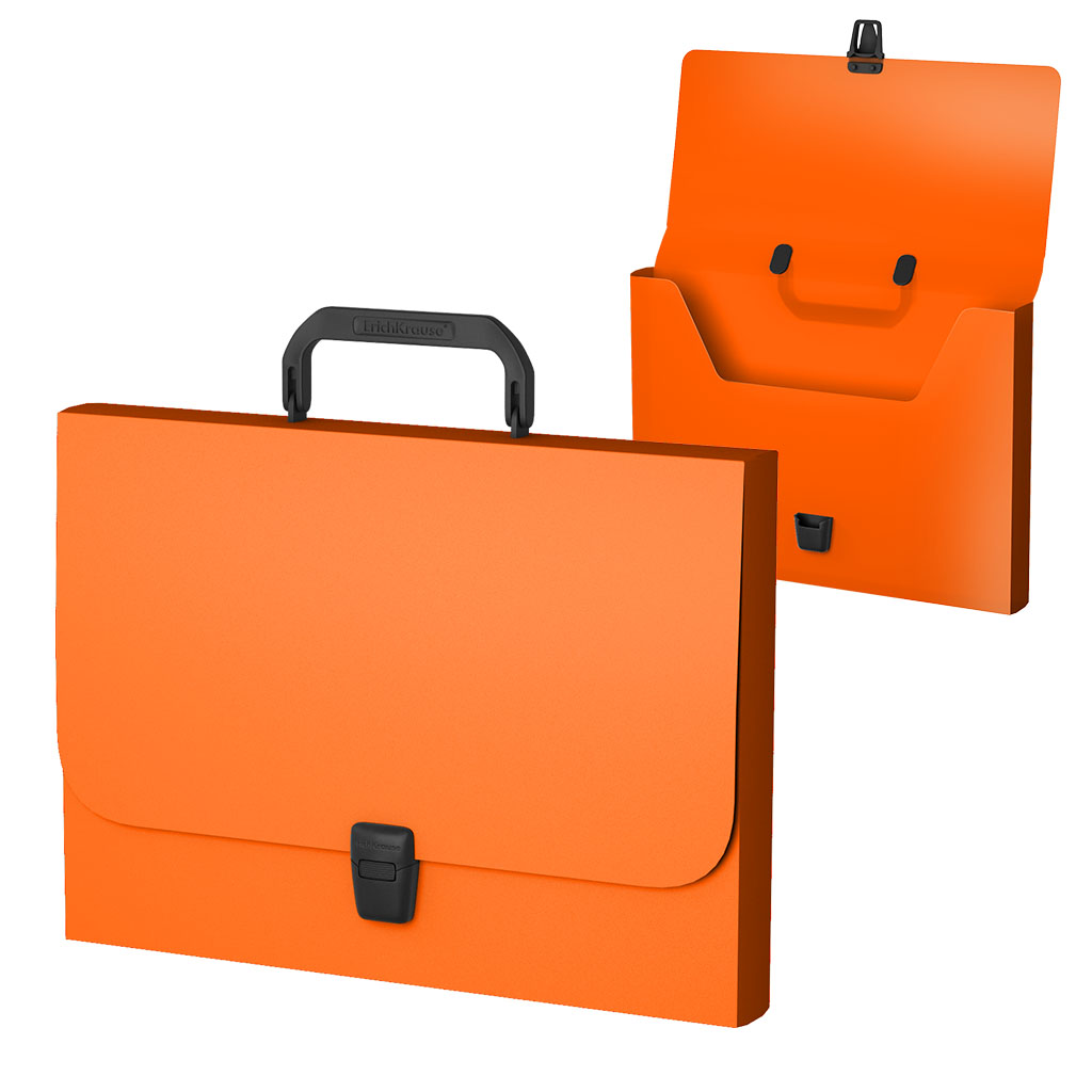 Портфель формата А4 из высококачественного пластика с текстурой поверхности "песок", на которой не видно отпечатков пальцев и мелких царапин. Предназначен для транспортировки документов. Цвет портфеля - оранжевый. Портфель вмещает до 350 бумажных листов. Оснащен фирменным замком и ручкой с логотипом ErichKrause®. Размер портфеля - 335х230х35, толщина материала - 0.80мм. |