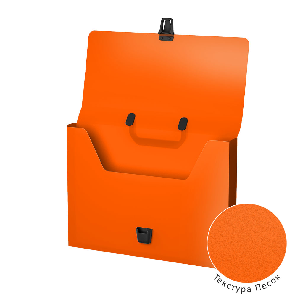 Портфель формата А4 из высококачественного пластика с текстурой поверхности "песок", на которой не видно отпечатков пальцев и мелких царапин. Предназначен для транспортировки документов. Цвет портфеля - оранжевый. Портфель вмещает до 350 бумажных листов… |
