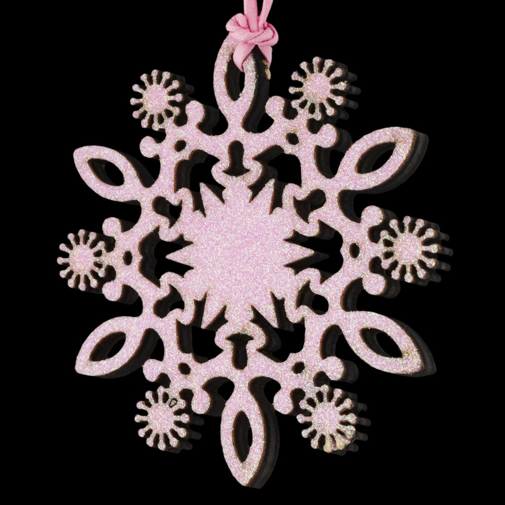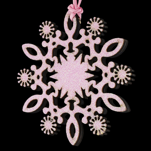 Украшения из древесины - тренд в области праздничного декора. Легкие и безопасные в использовании, на елке они смотрятся очень необычно. Отличный вариант для семьи с маленьким ребенком, а также детских учреждений. Снежинка розового цвета декорирована переливающимися… |
