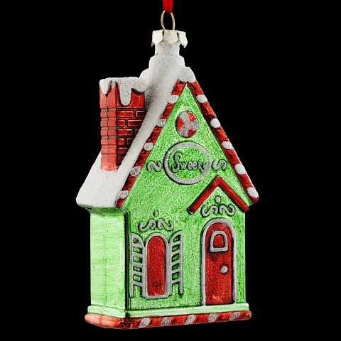 Пряничный домик выполнен из легкого пластика. Украшение отличается интересными деталями и яркими глянцевыми красным и зеленым цветом.Упаковка - полибэг. |