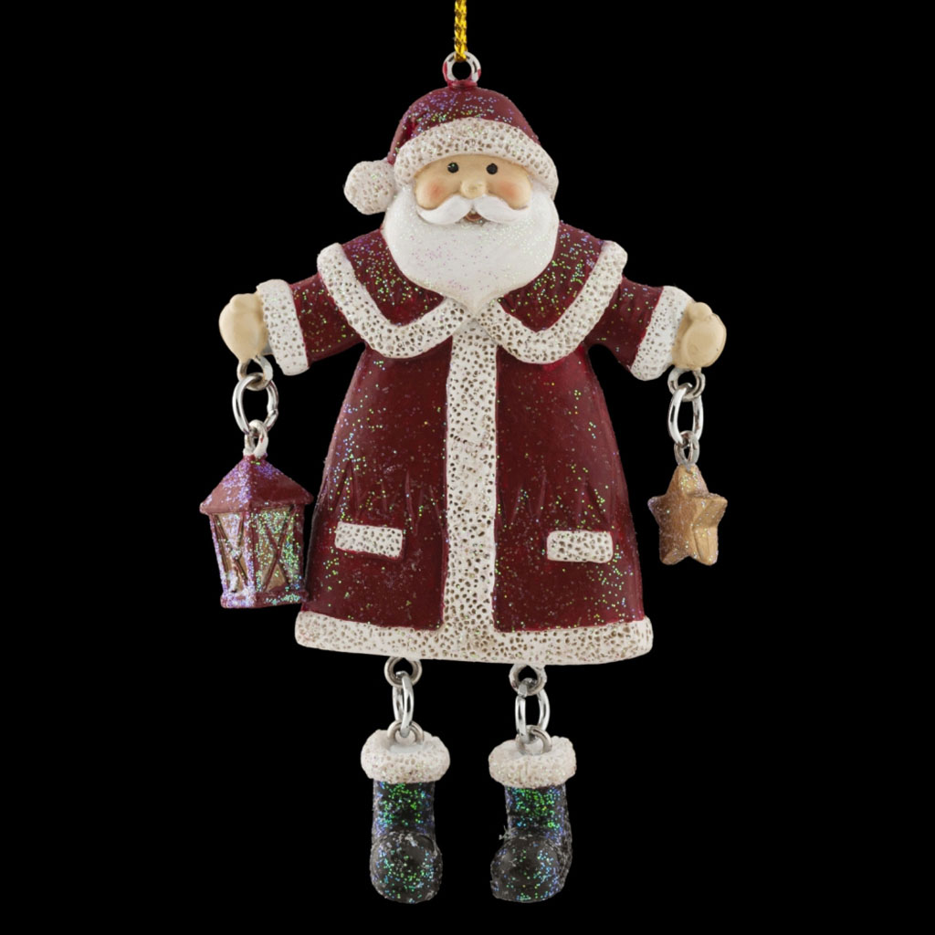Дед Мороз с фонариком и звездой в руках покрыт сверкающими блестками. Ножки украшения качаются. Групповая упаковка предназначена только для безопасной транспортировки и хранения. |