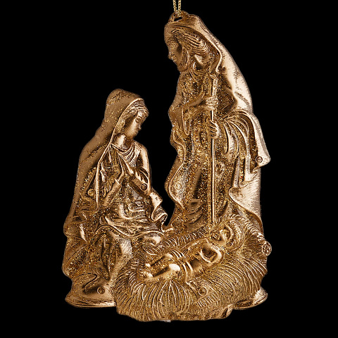 Украшение в виде классического рождественского сюжета выполнено из прозрачного пластика. Обратная сторона полностью покрыта золотыми блестками, а детали на лицевой стороне подчеркнуты золотой краской. Упаковка - полибэг. |
