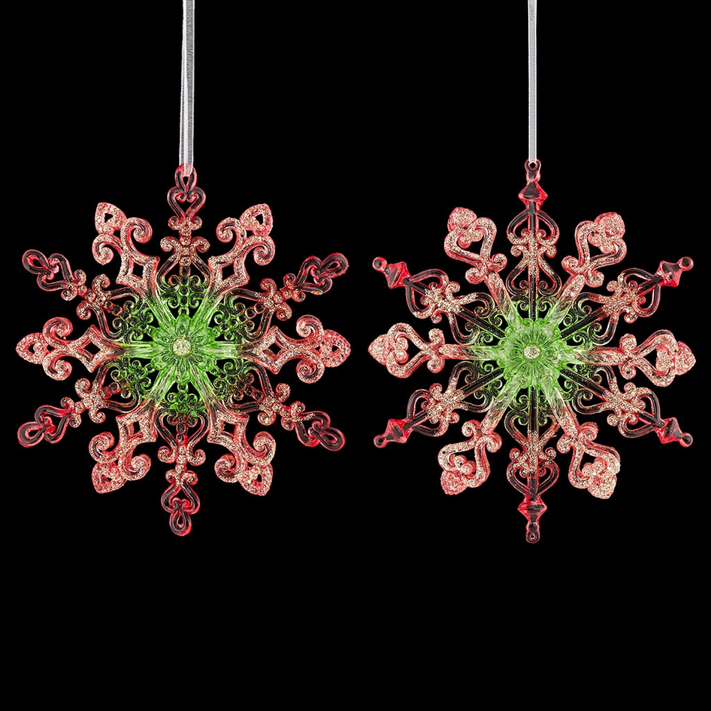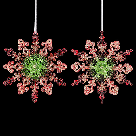 Красивая снежинка с изящным рельефом отличается необычной расцветкой - красные края плавно переходят в зеленую сердцевину. Ветви частично декорированы сверкающими блестками. Представлено две модели в ассортименте, находятся в групповой упаковке в равных долях. Выбор… |