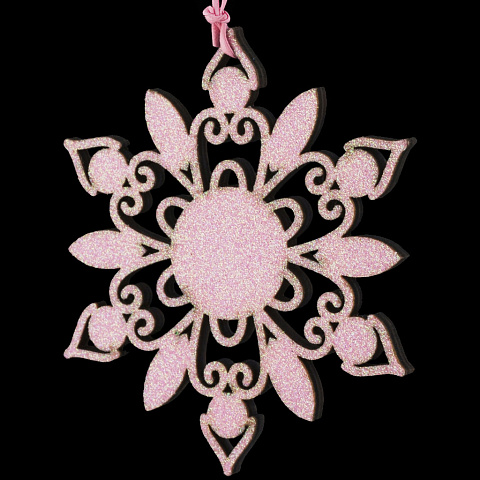 Украшения из древесины - тренд в области праздничного декора. Легкие и безопасные в использовании, на елке они смотрятся очень необычно. Отличный вариант для семьи с маленьким ребенком, а также детских учреждений. Снежинка розового цвета декорирована переливающимися… |