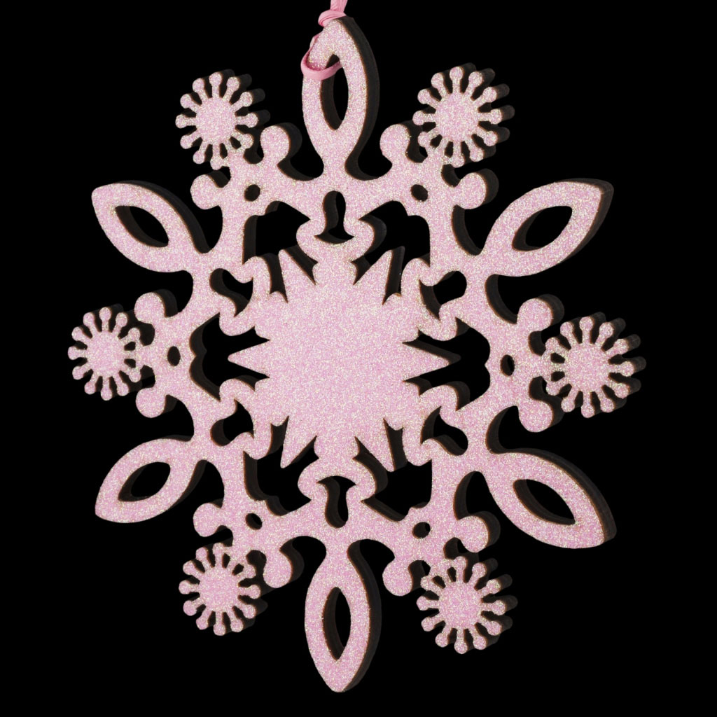 Украшения из древесины - тренд в области праздничного декора. Легкие и безопасные в использовании, на елке они смотрятся очень необычно. Отличный вариант для семьи с маленьким ребенком, а также детских учреждений. Крупная снежинка розового цвета подходит для оформления… |