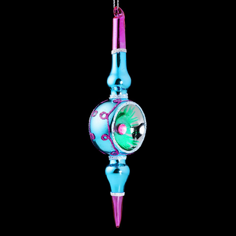 Украшение абстрактной формы выполнено из высококачественного стекла и отличается нежным розово-голубым окрасом с причудливым узором из блесток. Сердцевина украшения с двух сторон декорирована крупной стразой. Групповая упаковка предназначена только для безопасной транспортировки и хранения. |