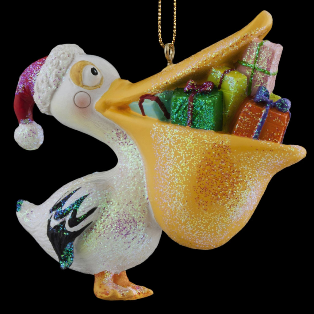 Милый пеликан несет в большом клюве подарки. Миниатюрность и легкость изделия позволяет украшать натуральные и искусственные елки. Украшение частично покрыто блестками, мерцающими в темноте загадочным светом. Групповая упаковка предназначена только для безопасной… |