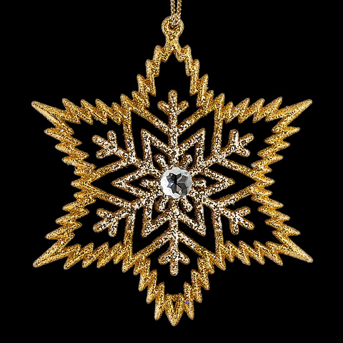 Снежикнка ярко сияет золотыми блестками двух оттенков, переходящими от насыщенного золота к более спокойному центру. Сердцевина декорирована стразой с обеих сторон. Упаковка - полибэг. |