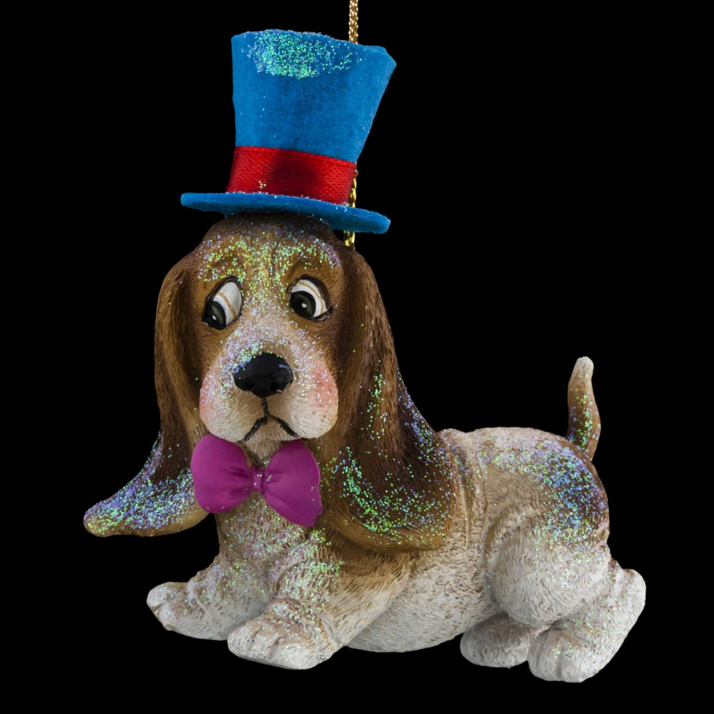 Бассет в цилиндре, выполненный из полирезины, отличается точно прорисованными деталями. Украшение достаточно тяжелое и больше подходит для искусственных елок или в качестве сувенира. Групповая упаковка предназначена только для безопасной транспортировки и хранения. |