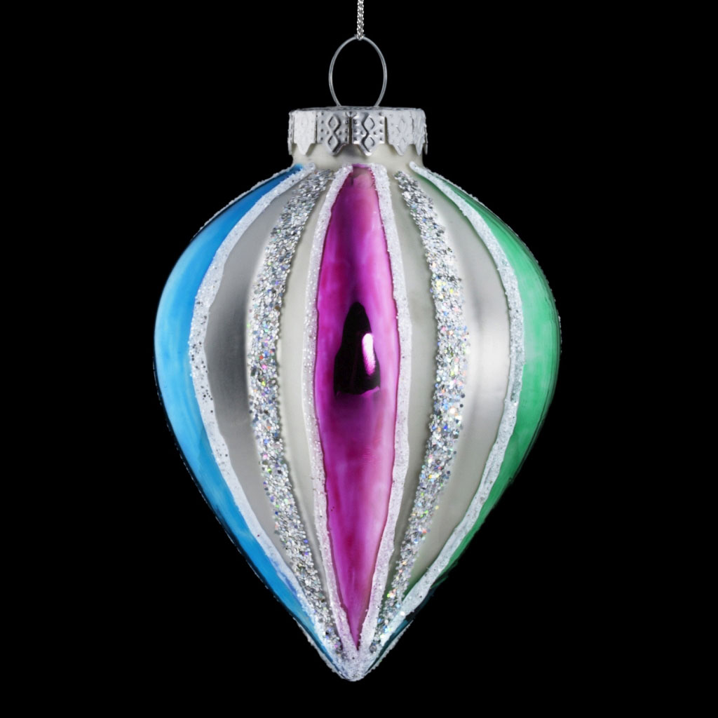 Многогранная ребристая капля выполнена из стекла высокого качества. Украшение отличается разноцветным окрасом, перемежающимся с продольными дорожками из блесток. Групповая упаковка предназначена только для безопасной транспортировки и хранения. |