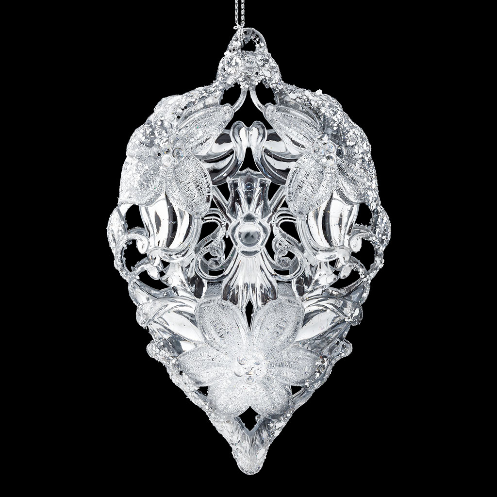Крупное объемное украшение в форме капли имеет ажурный рельеф в виде цветов. Предназначено для украшения крупных елок. Блестки, спрятанные внутри каждого цветка, сохраняют внешнюю поверхность гладкой и приятной на ощупь. Товар поставляется в нескольких вариантах… |