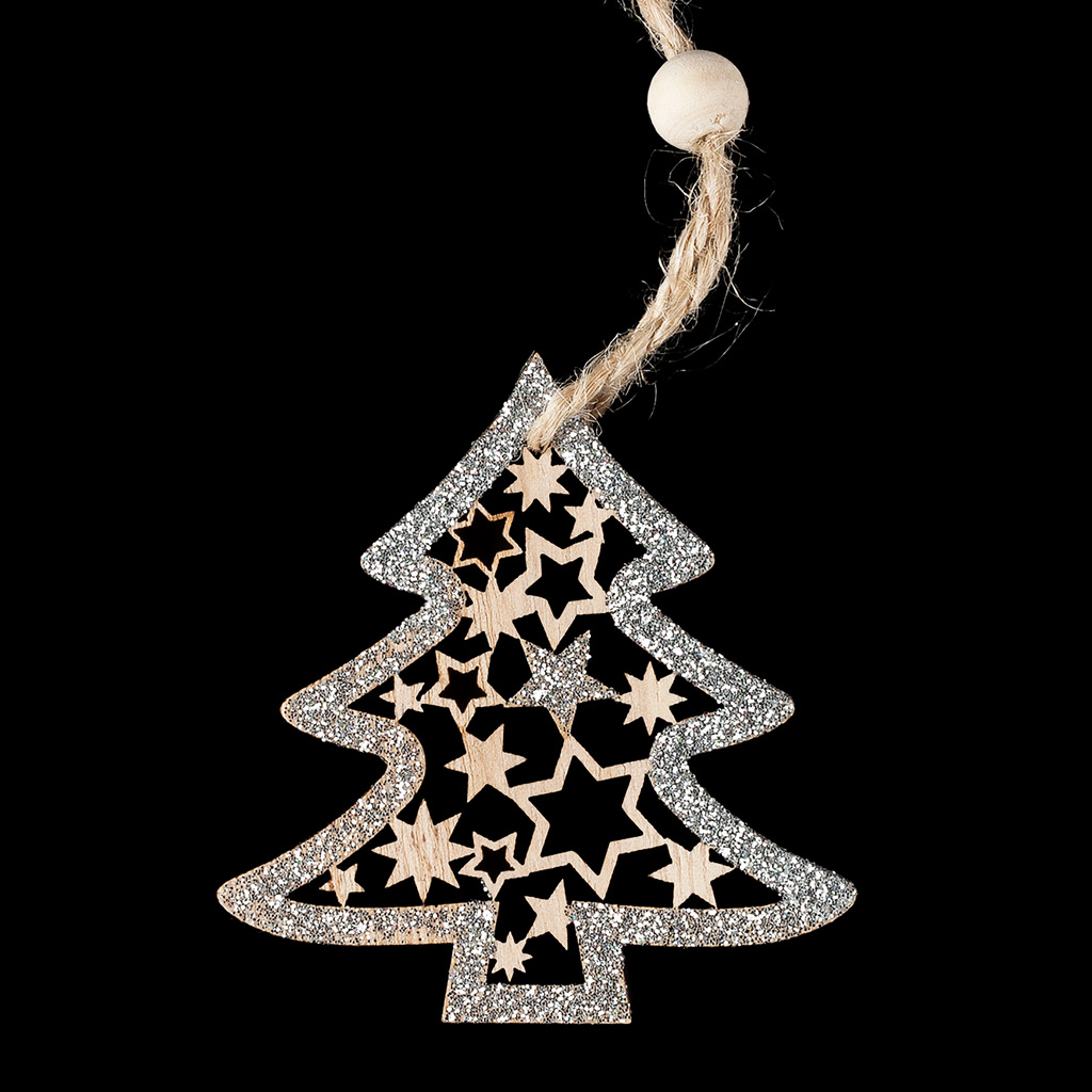 Оригинальная елочка покрыта серебряными блестками и имеет ажурный рисунок из звездочек внутри. Украшения из древесины - тренд в области праздничного декора. Легкие и безопасные в использовании, на елке они смотрятся очень необычно. Отличный вариант для семьи с… |