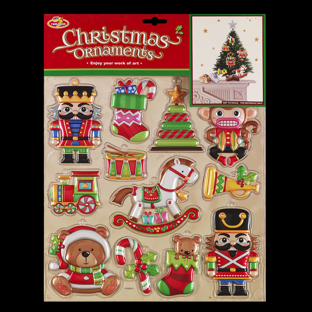 Набор состоит из 12 украшений размером от 6 до 13 см. Имеют выраженный рельеф и насыщенные цвета, легко отделяются от подложки. Ленточки для подвешивания входят в комплект. Изделия являются односторонними. Упаковка - картонная подложка с европодвесом + полибэг. |