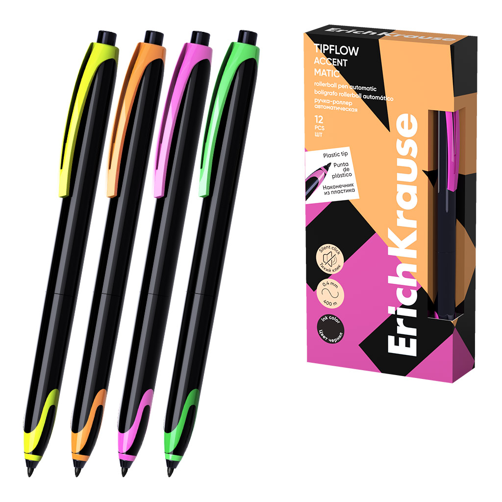 Ручка-роллер автоматическая ErichKrause TipFlow Matic Accent 0.5, цвет чернил черный (в коробке по 12 шт.) |