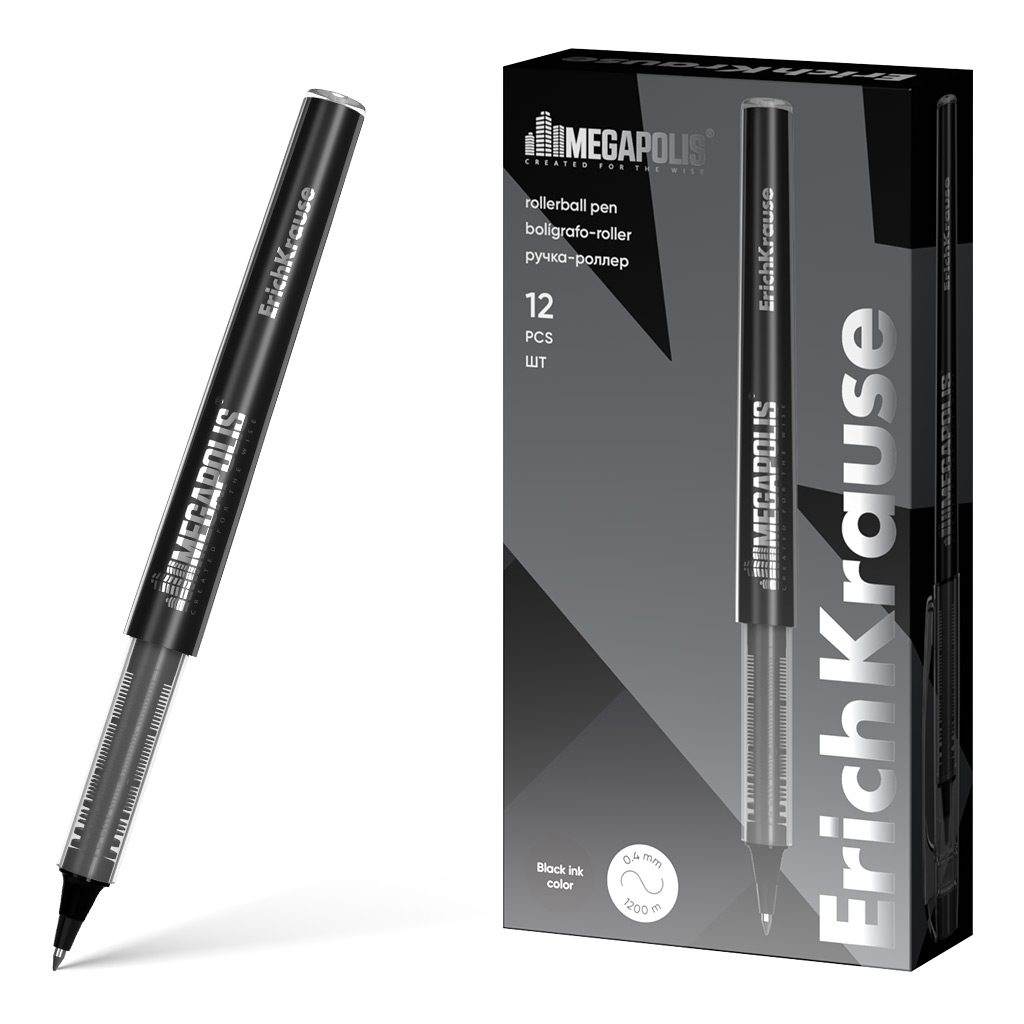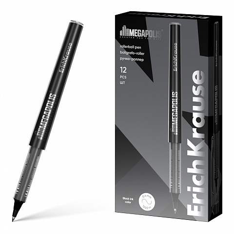 Ручка-роллер ErichKrause MEGAPOLIS® Stick 1.0, цвет чернил черный (в коробке по 12 шт.) |