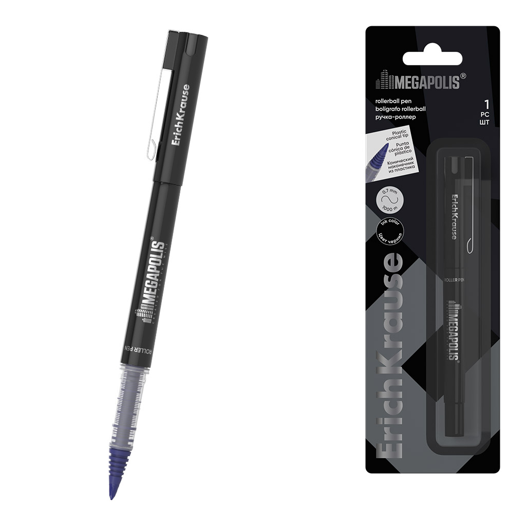 Ручка-роллер ErichKrause MEGAPOLIS® Stick 1.0, цвет чернил черный (в блистере по 1 шт.) |