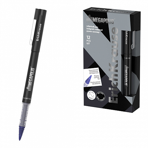 Ручка-роллер ErichKrause MEGAPOLIS® Stick 1.0, цвет чернил синий (в коробке по 12 шт.) |