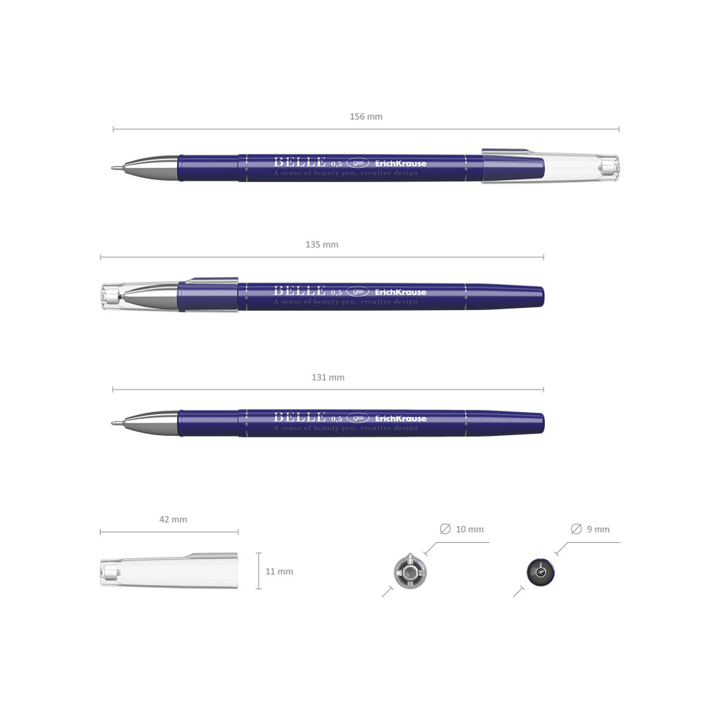 Ручка гелевая ErichKrause® Belle Gel, цвет чернил синий (в коробке по 12 шт.) |