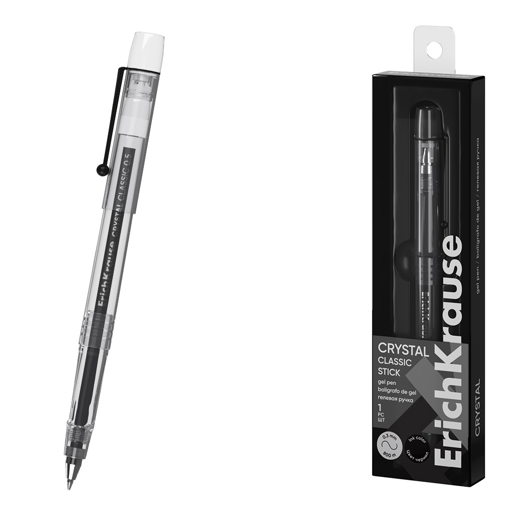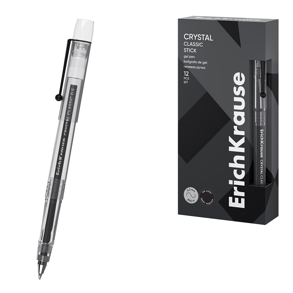 Ручка гелевая ErichKrause Crystal Stick Classic 0.5, цвет чернил черный (в коробке по 12 шт.) |