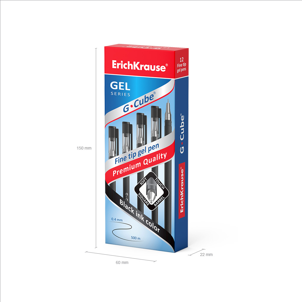 Ручка гелевая ErichKrause G-Cube® Stick Classic 0.5, цвет чернил черный (в коробке по 12 шт.) |