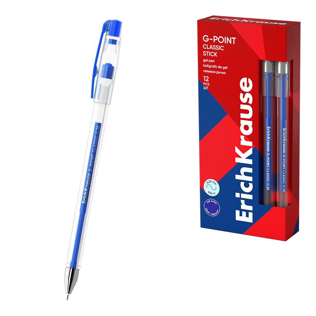 Ручка гелевая ErichKrause G-Point Stick Classic 0.38, цвет чернил синий (в коробке по 12 шт.) |