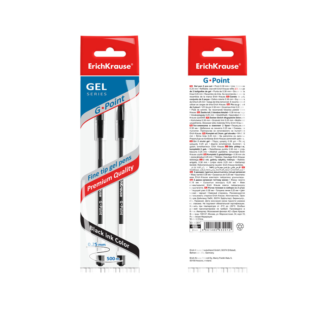Набор из 2 ручек гелевых ErichKrause G-Point Stick Classic 0.38, цвет чернил черный (в пакете) |