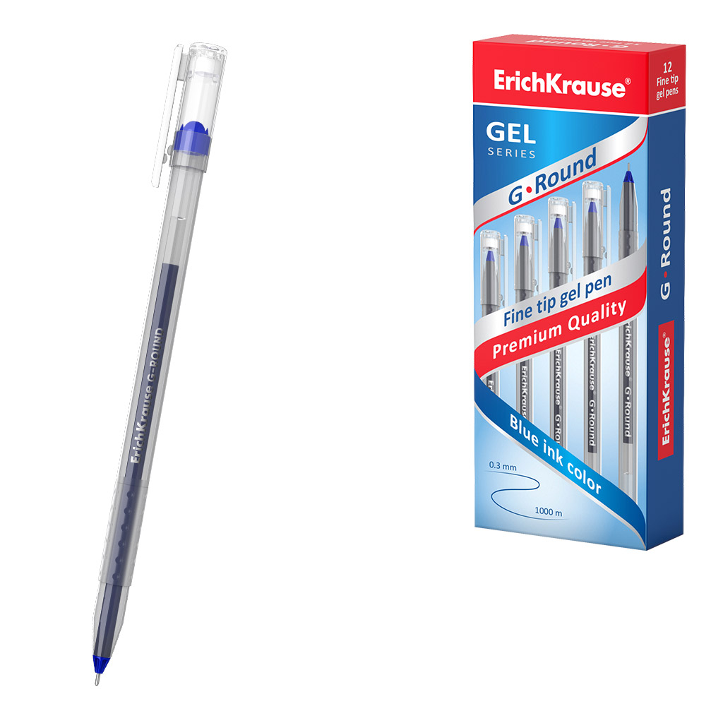 Ручка гелевая ErichKrause G-Round Stick Classic 0.5, цвет чернил синий (в коробке по 12 шт.) |