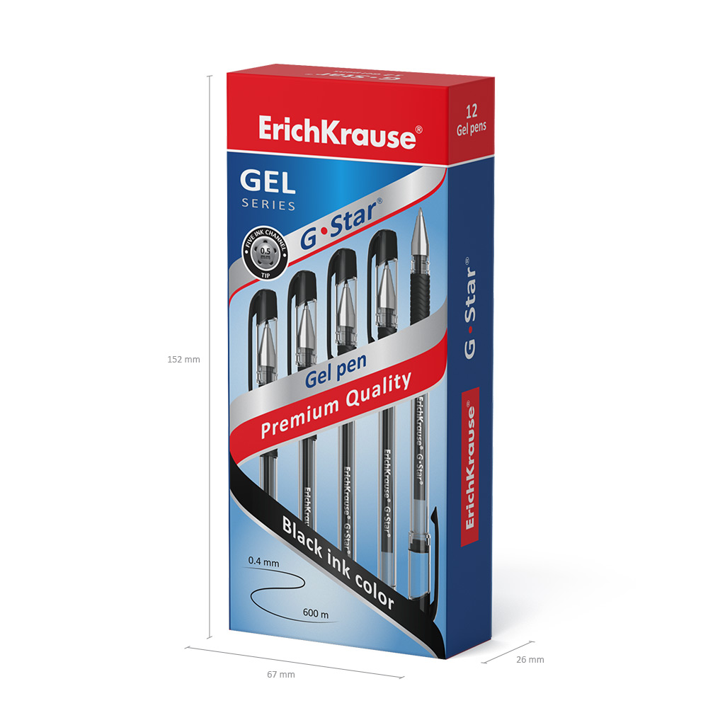Ручка гелевая ErichKrause G-Star® Stick&Grip Classic 0.5, цвет чернил черный (в коробке по 12 шт.) |