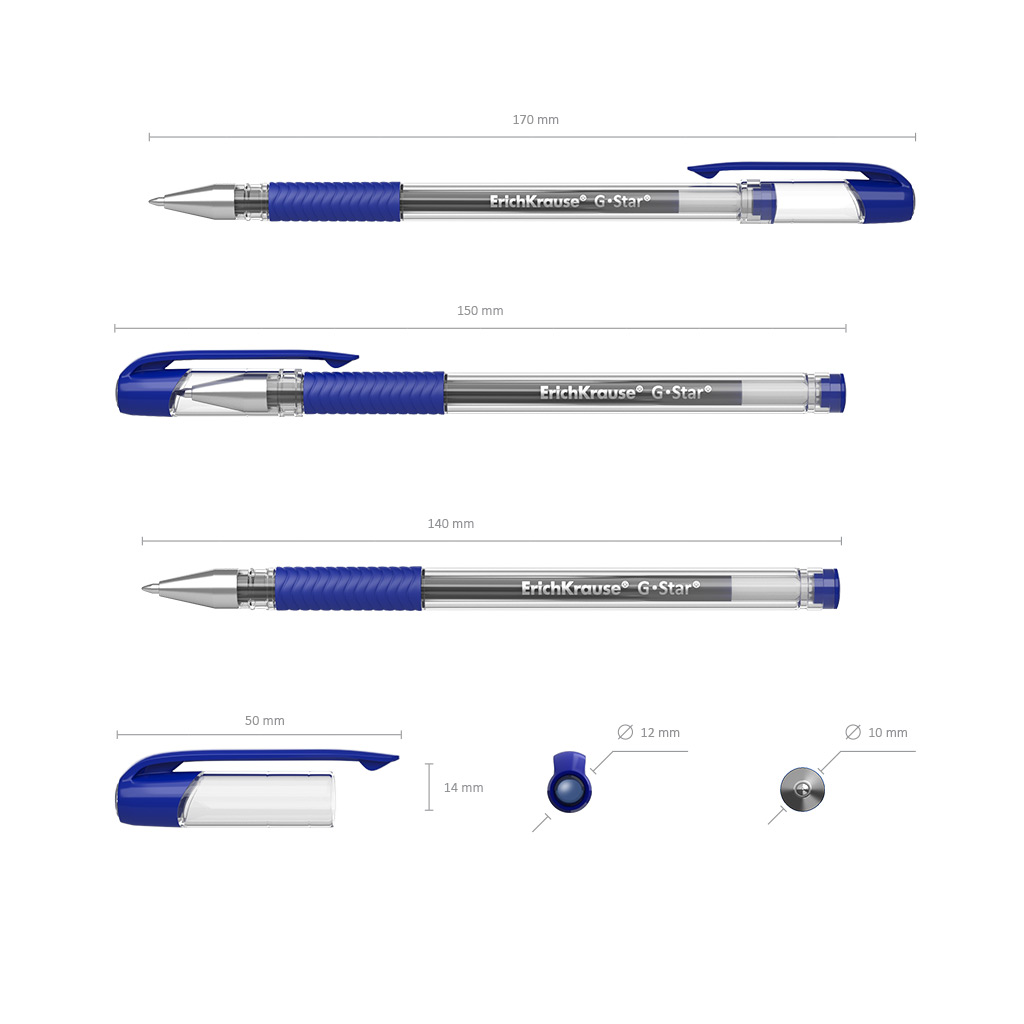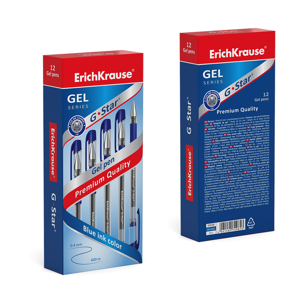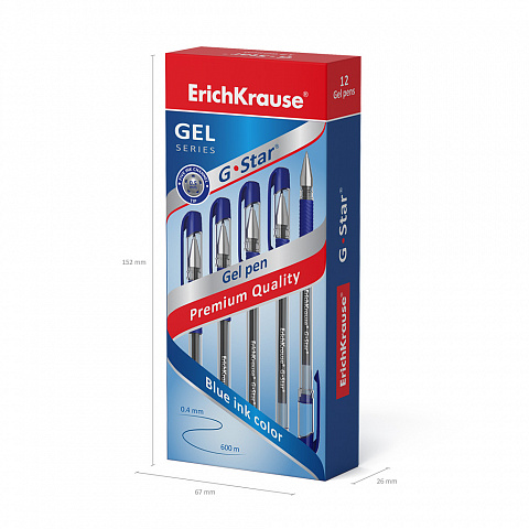 Ручка гелевая ErichKrause G-Star® Stick&Grip Classic 0.5, цвет чернил синий (в коробке по 12 шт.) |