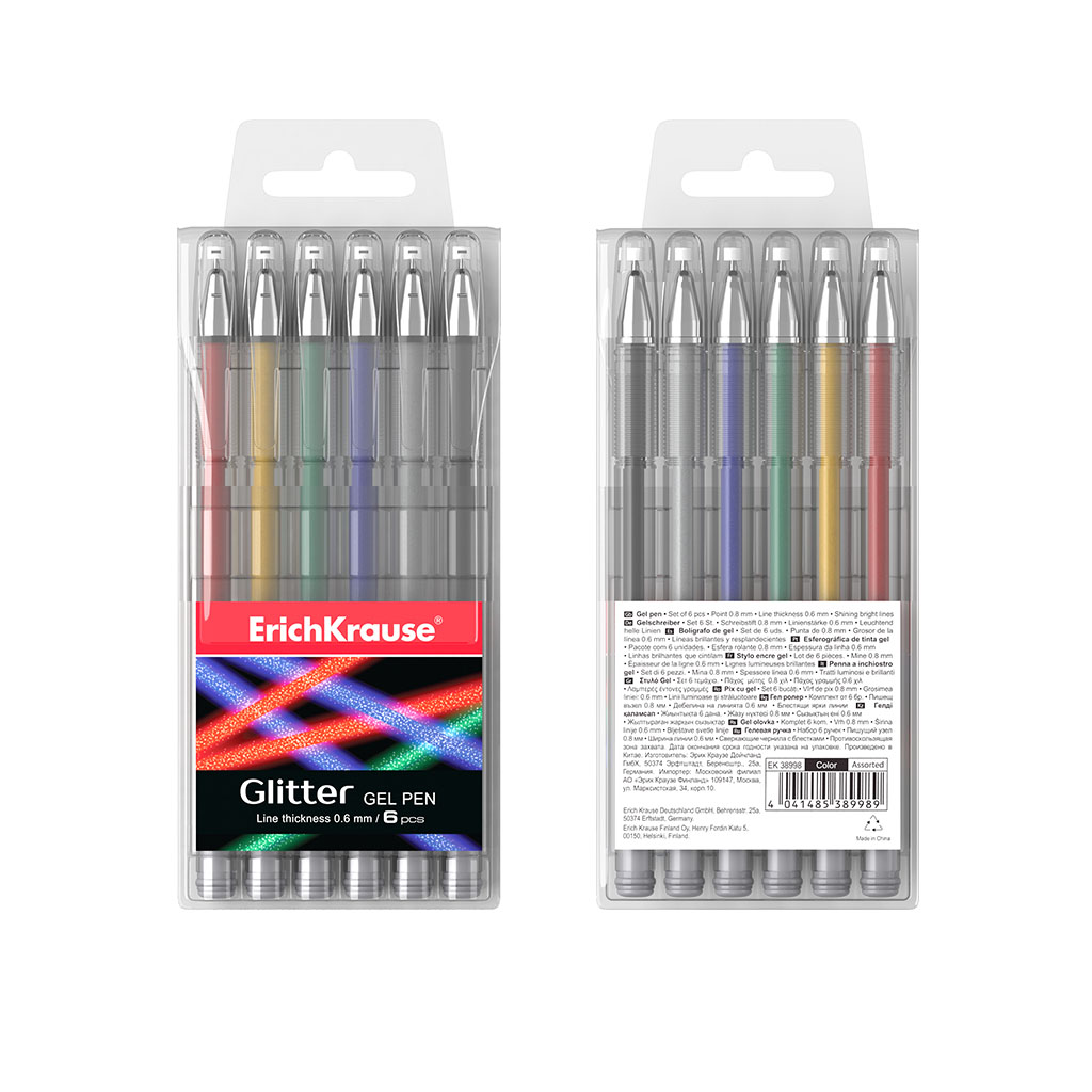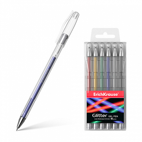 Ручка гелевая ErichKrause® Glitter (в футляре по 6 шт.) |