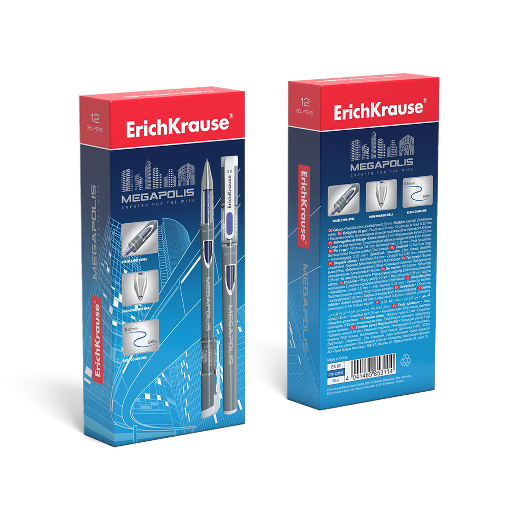 Ручка гелевая ErichKrause MEGAPOLIS® Gel Stick 0.5, цвет чернил синий (в коробке по 12 шт.) |