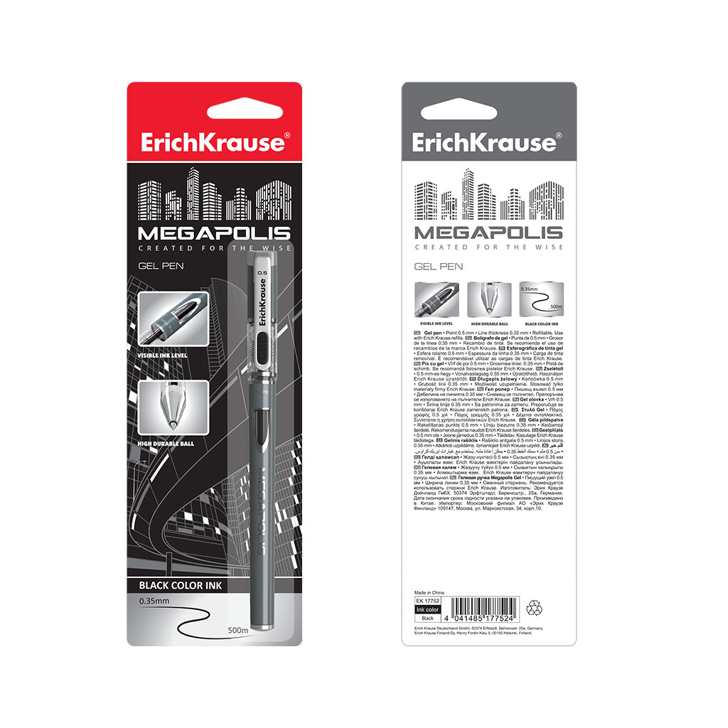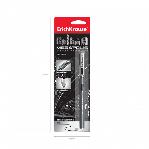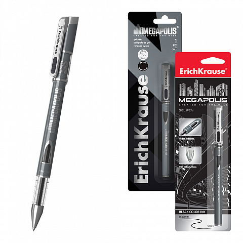 Ручка гелевая ErichKrause MEGAPOLIS® Gel Stick 0.5, цвет чернил черный (в блистере по 1 шт.) |
