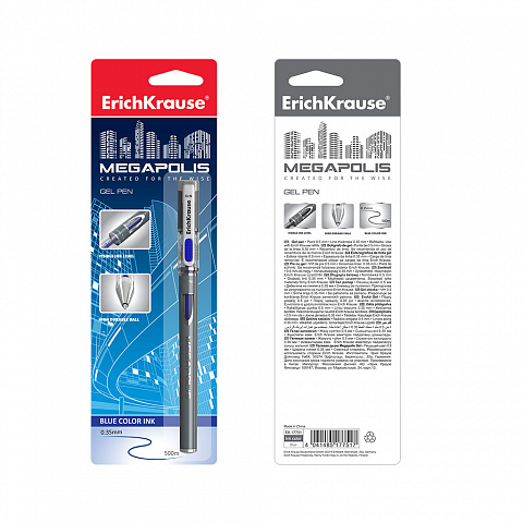 Ручка гелевая ErichKrause MEGAPOLIS® Gel Stick 0.5, цвет чернил синий (в блистере по 1 шт.) |