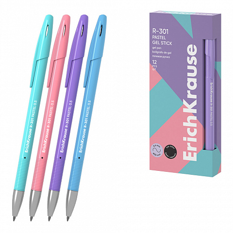 Ручка гелевая ErichKrause R-301 Gel Stick Pastel 0.5, цвет чернил черный (в коробке по 12 шт.) |