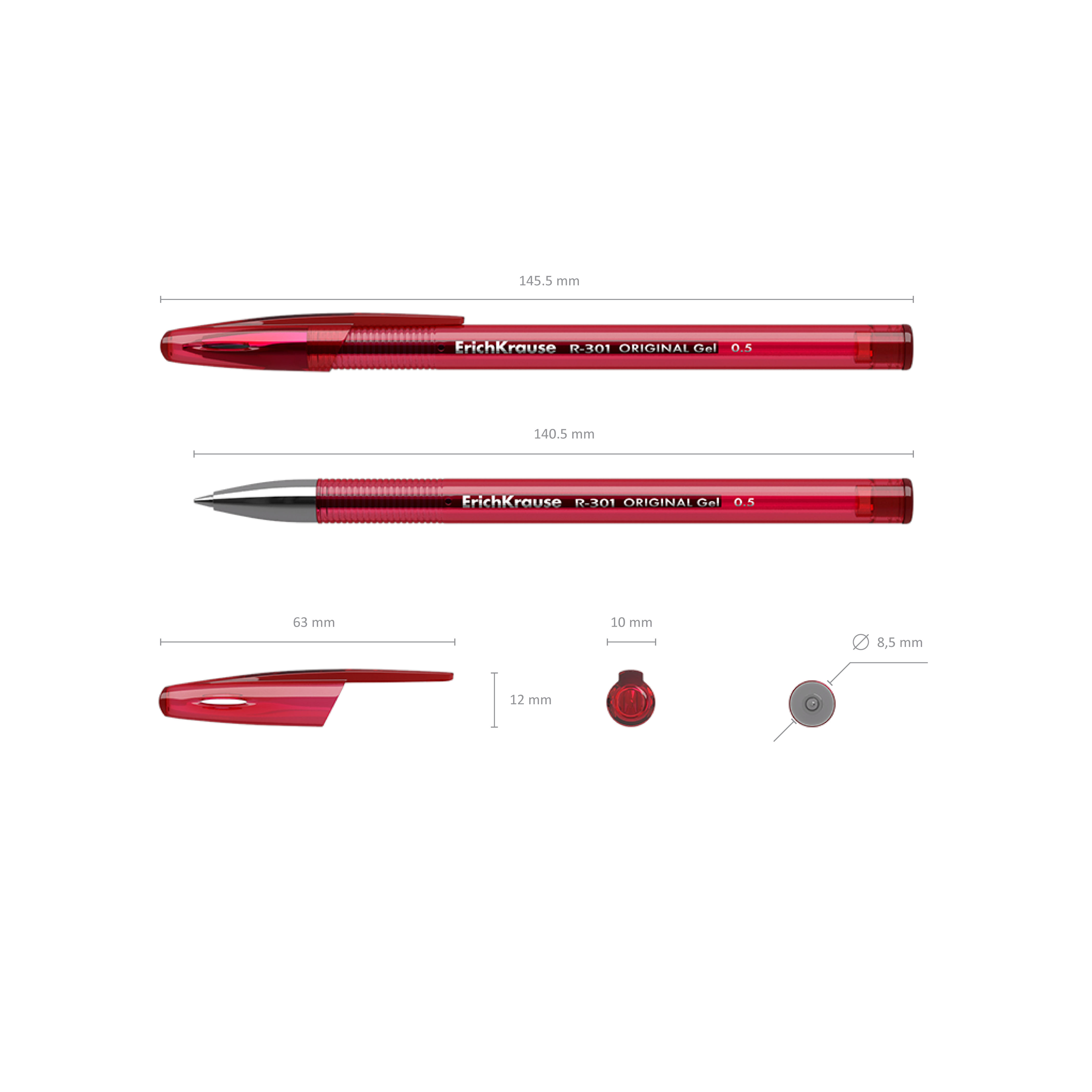Ручка гелевая ErichKrause R-301 Gel Stick Original 0.5, цвет чернил красный (в коробке по 12 шт.) |