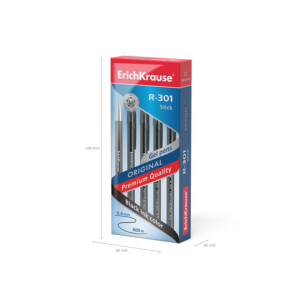 Ручка гелевая ErichKrause R-301 Gel Stick Original 0.5, цвет чернил черный (в коробке по 12 шт.) |