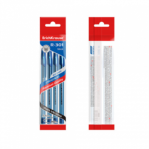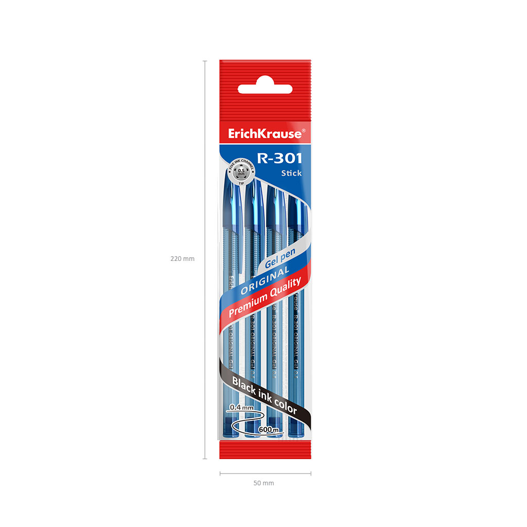 Ручка гелевая ErichKrause R-301 Original Gel Stick 0.5, цвет чернил синий (в пакете по 4 шт.) |