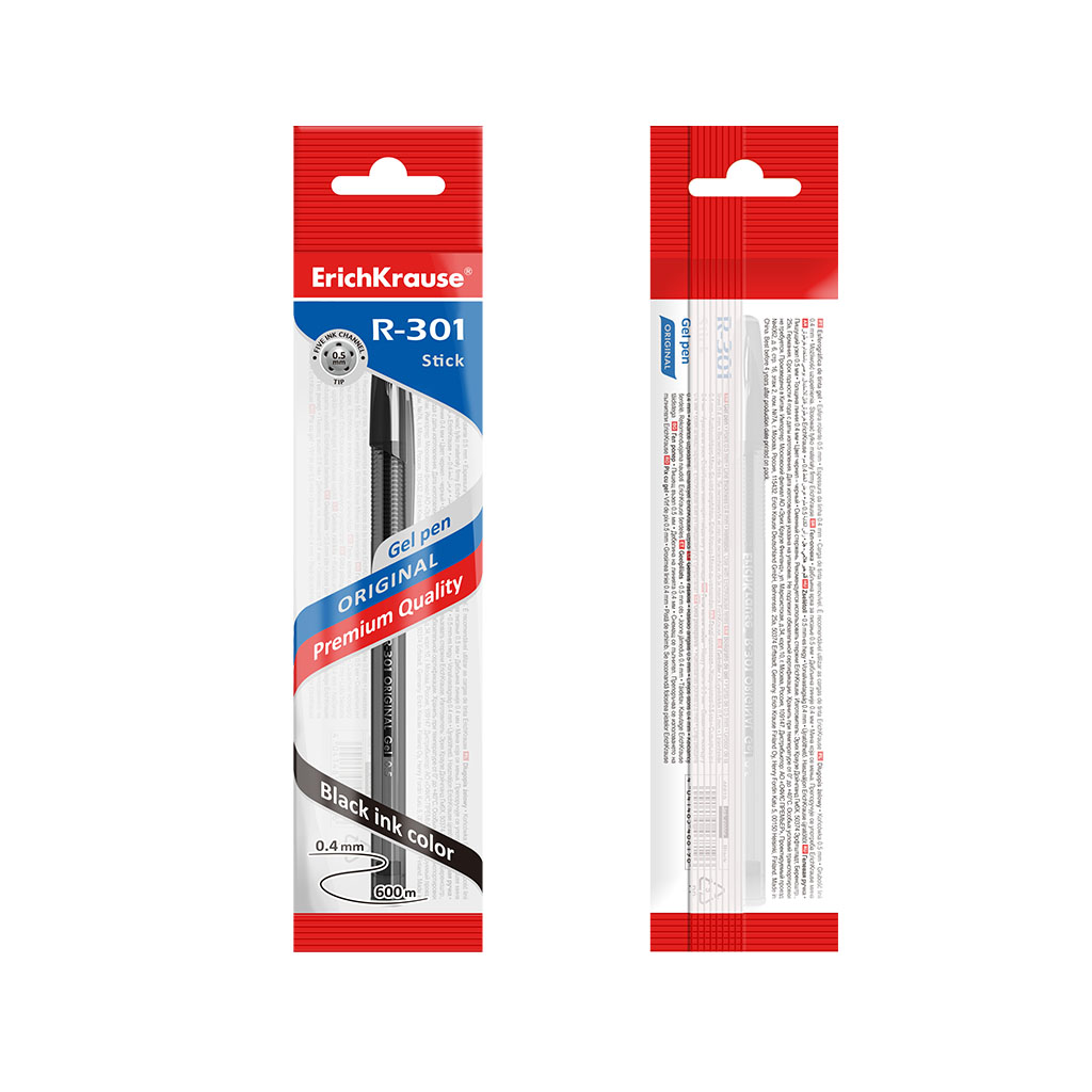 Ручка гелевая ErichKrause® R-301 Original Gel Stick 0.5, цвет чернил черный (в пакете по 1 шт.)