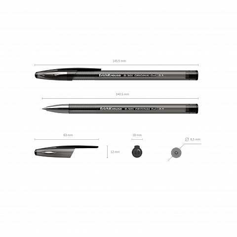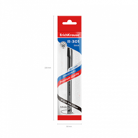 Ручка гелевая ErichKrause® R-301 Original Gel Stick 0.5, цвет чернил черный (в пакете по 1 шт.) |